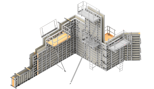Skråstøtter stabiliserer forskalingen fra utsiden og holder riktig posisjon.